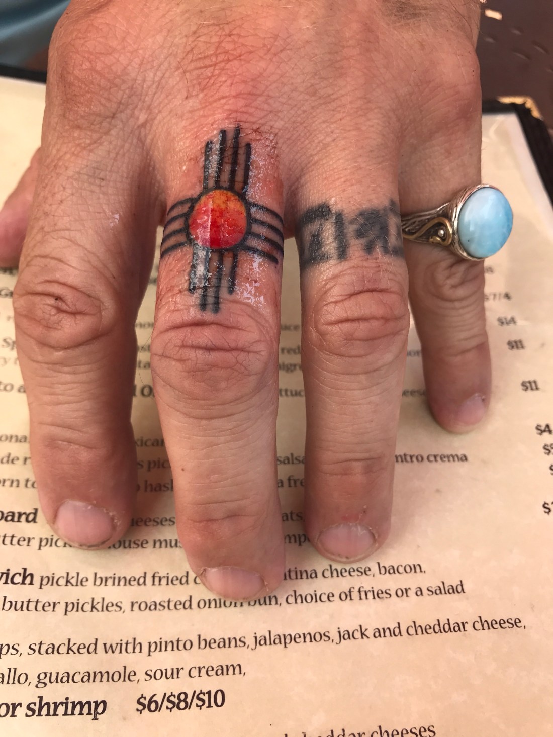 Here is Jason’s new tattoo! It is the Zia symbol. It’s commonly seen and used throughout New Mexico. It represents the 4 seasons, 4 directions, 4 stages of life, and 4 times of day. It also suggests you should work on your mind, body, spirit, and community. He has wanted this symbol for over 20 years since his first time in NM. It looks amazing!