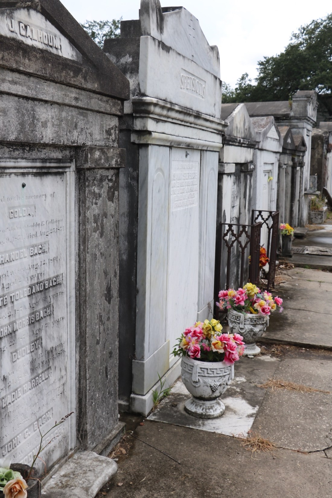 It had just started to rain so we drove toward Bourbon street to see where we could find parking before walking the area. We walked two blocks before the skies opened up. The poor pups were soaked. Jason ran back to get the car and by the time he got to us the downpour had ended. We still decided that it wasn’t worth doing that again so we drove around the city looking for places Clifton pointed out or we read about the night before. Jason has always wanted to go to a Louisiana cemetery because the graves are above ground. He grabbed some amazing pictures.