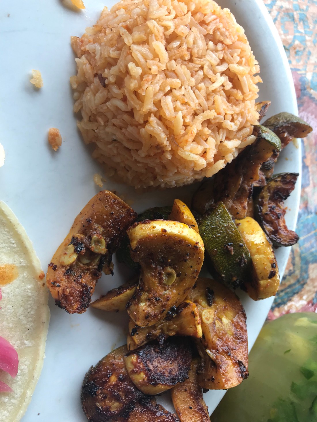 I got mushroom and spinach tacos with a poblano sauce and we shared Mexican rice and veggies as a side. So tasty!