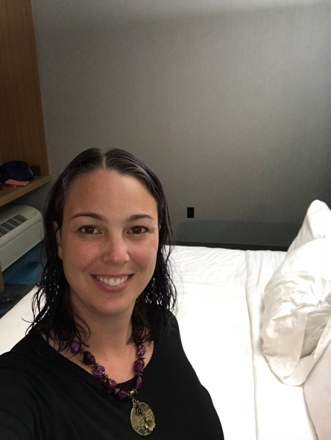 We totally forgot to get pictures of this room but I was laughing at an all white bed in a dog friendly hotel. We have two black haired dogs, sooooo sorry Aloft! Haha