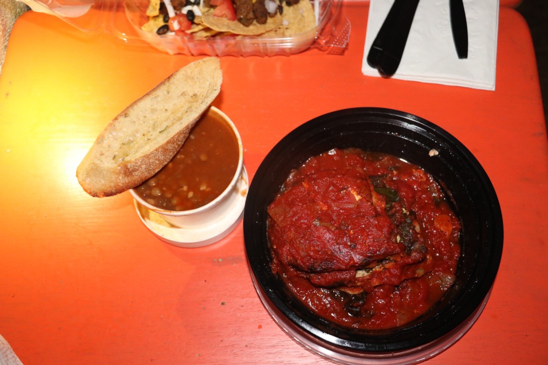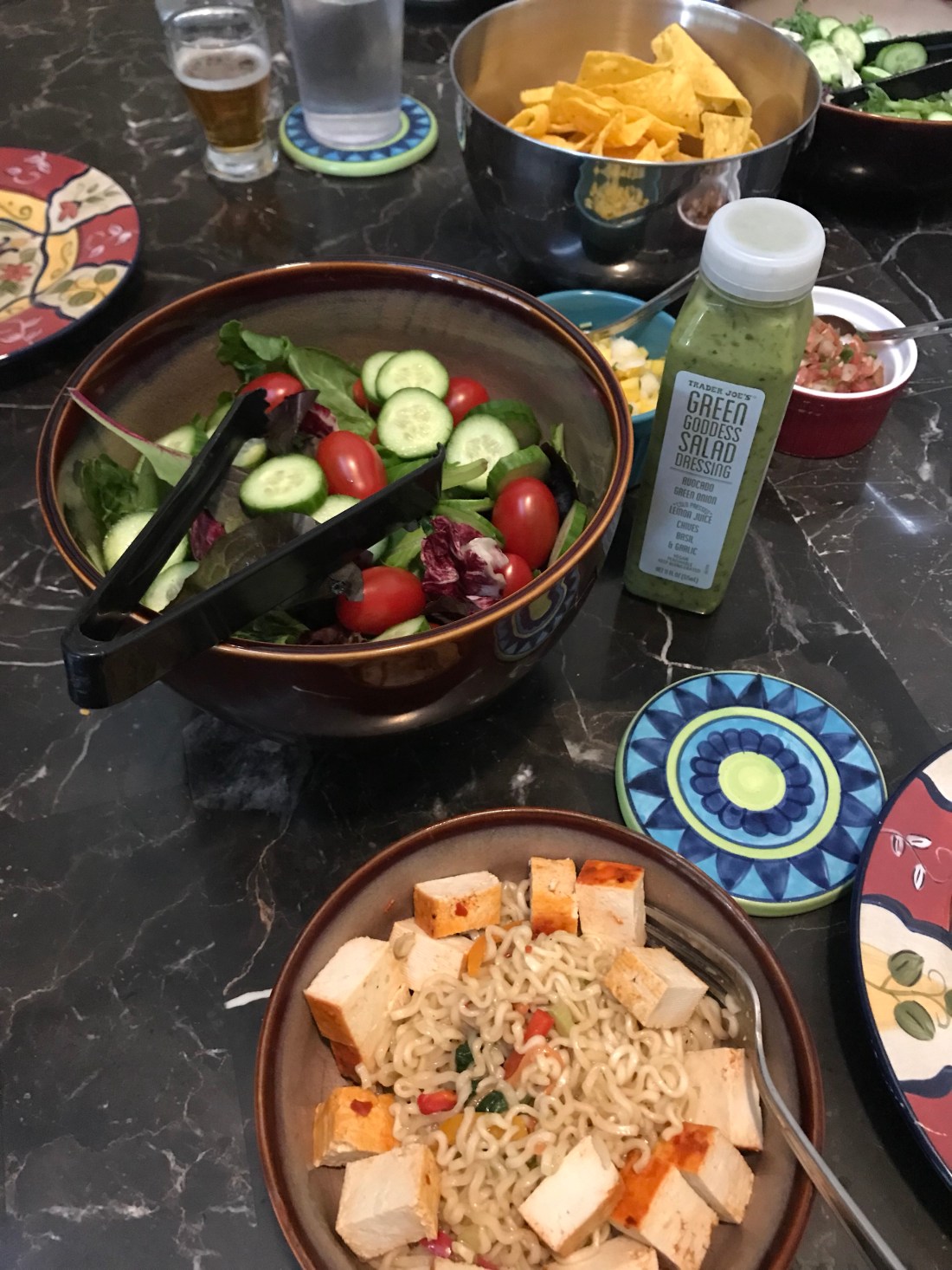 I had the best tofu from Whole Foods with my salad. Jason had spinach dip with chips. Simple and easy.