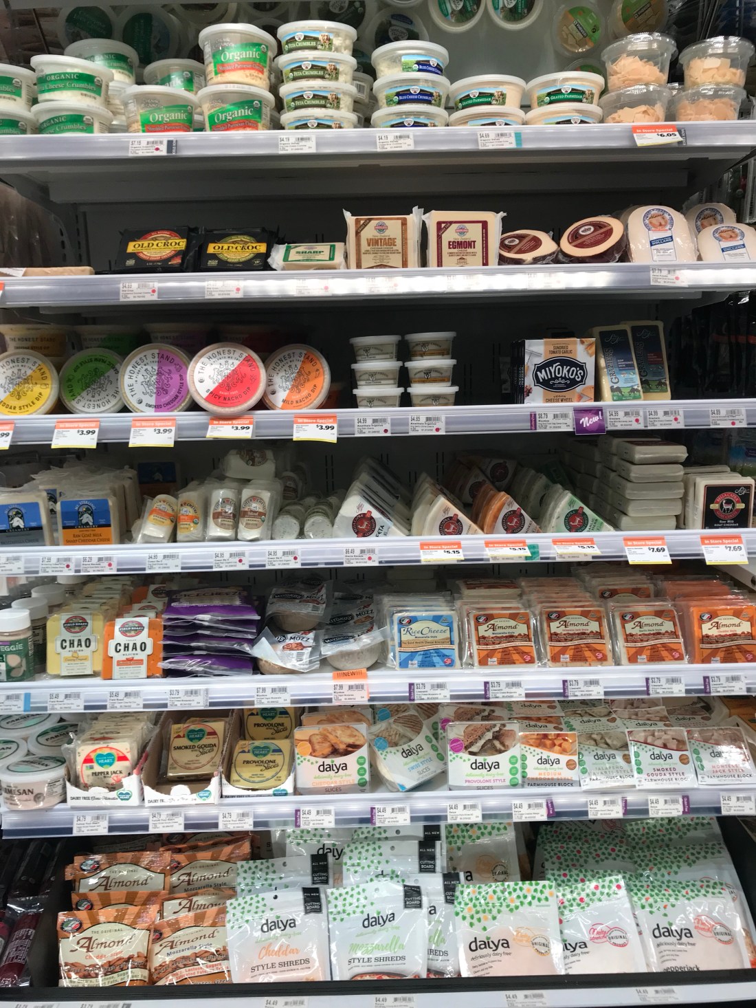 Look at this INSANE collection!!! Soft cheese, shredded cheese x 5, sliced cheeses, cheese dips….all dairy free! All vegan!!! I am lucky if I can get ONE non dairy cheese at a store. Hence the tears. I just hope this place finds its way home!